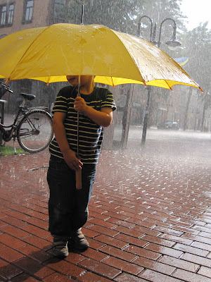 Das mit den Jahreszeiten ist gar nicht so einfach, vor allem nicht, wenn man erst zwei und der letzte Herbst ein halbes Leben her ist. Im Kindergarten sind die Jahreszeiten zwar immer wieder und in liebevoller Ausgestaltung Thema, jetzt zum Beispiel werden Kastanienketten gefädelt, die Kinder erzählen Igelgeschichten und basteln Igel mit Ahorn-Nasen, sie feiern Erntedank, machen eine Kartoffelwoche, bemalen Laternen und lernen Martinslieder. Es ist auch nicht so, dass Zweijährige die Veränderungen in der Natur nicht bemerken würden, und entsprechend sang Baby B ein Laternelied (ein Musterbeispiel des Textefalschverstehen, übrigens) "der Jäger in dem grünen Wald... mit der Tür geknallt... piff puff" und beschwerte sich dann nicht etwa über die Türen im Wald, sondern fragte kritisch nach, "warum grüner Wald? Warum nicht rot?" Auch haben wir natürlich morgens regelmäßig Diskussionen darüber, ob er Sandalen anziehen darf (nein) und ob er wirklich einen Schal tragen soll (ja), und thematisieren somit täglich, wie das mit dem Wetter ist. Und dennoch ist diese Sache mit Wetterlage über längere Phasen und wie das mit den Jahreszeiten zusammenhängt nicht ganz zu verstehen.