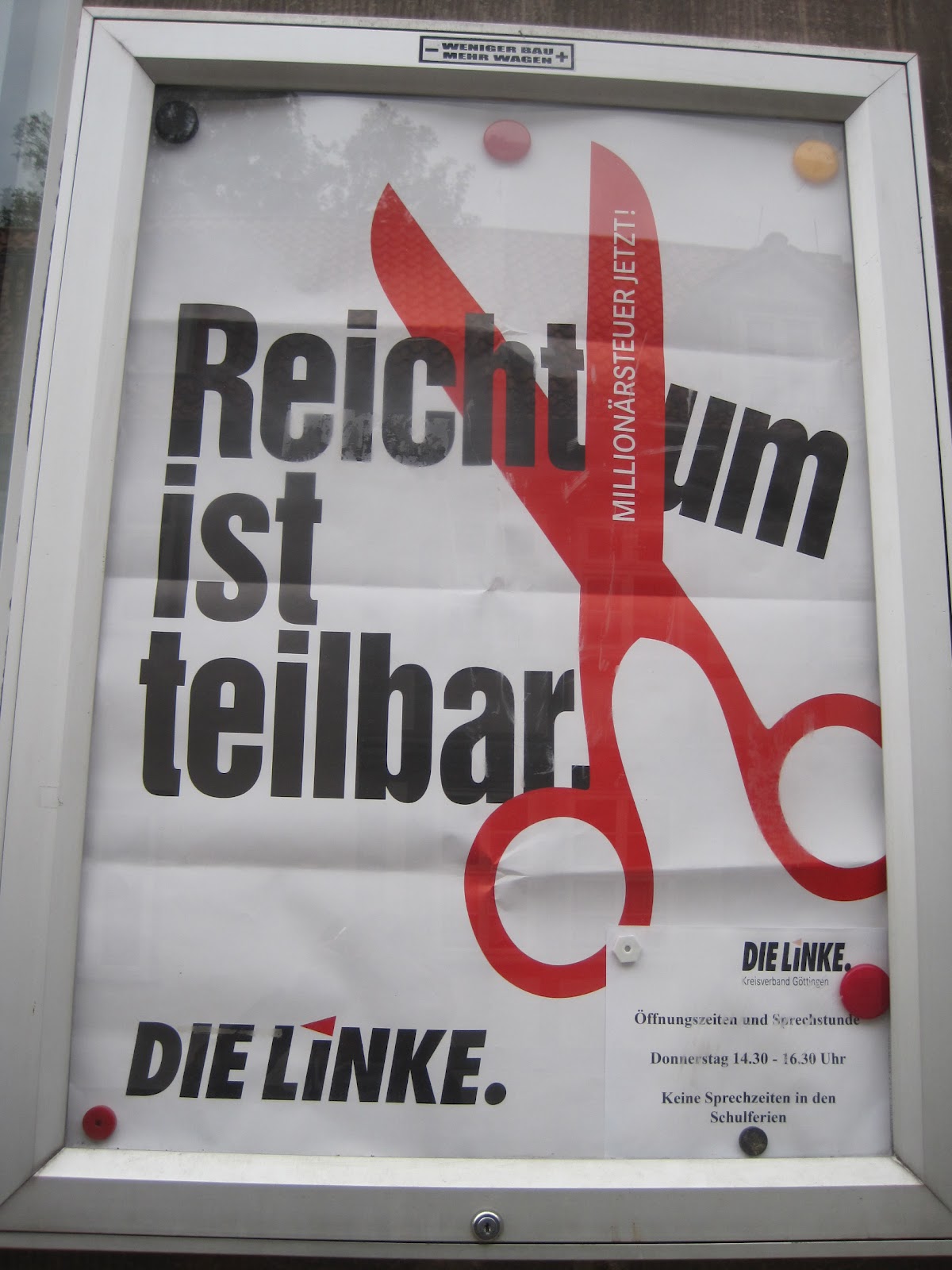 Also, liebe Linke, natürlich ist Reichtum teilbar. Aber doch bitte VOR dem T! Reich|tum, der.